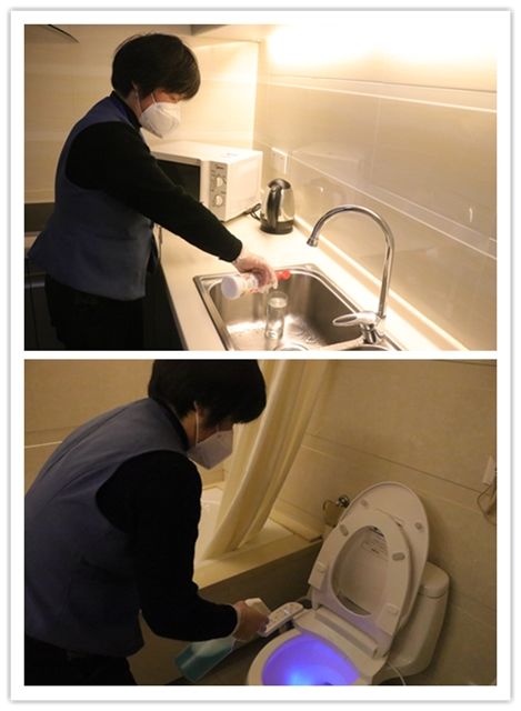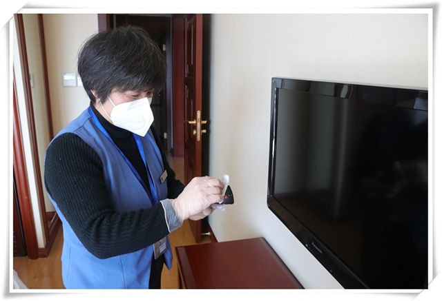 邱仲紅看在眼里急在心里,心想,如果自己輪休在家,萬一替班同事與客人溝通不順暢怎么辦?于是,她主動申請上班,每天進房后第一件事就是開窗通風(fēng),把房間打掃干凈。然后,按防疫程序,將門把手、遙控器、電話、五金件,就連快遞送入房間前都會用酒精逐一消毒,確保衛(wèi)生安全。